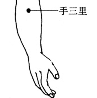 在肘橫紋下量三指寬的距離,按壓凹陷處即是。
