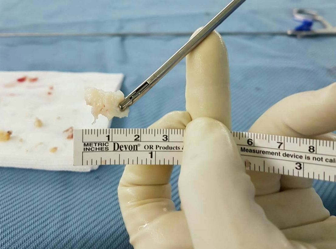 楊椒喬醫師指出,在局部麻醉的情況下,避免破壞與拉扯脊椎旁大面積的肌肉與組織,同時保護脊椎神經不受傷害,總計竟取出高達9顆椎間盤突出,其中3顆大小還超過1公分。術後患者馬上止痛、立即下床,並在隔天就能出院返家。