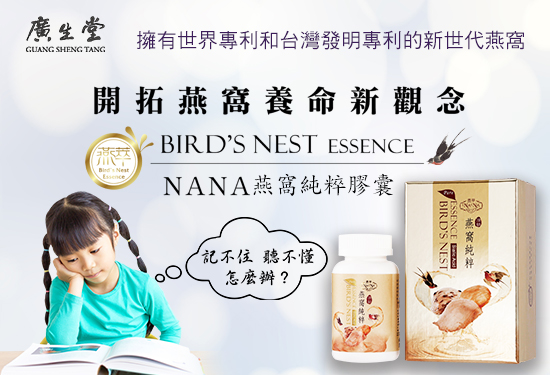 廣生堂的NANA燕萃膠囊運用世界專利萃取技術,將燕窩珍貴的營養素-唾液酸完美萃取並完整封存於膠囊中,省去了以往烹煮燕窩的麻煩,開拓燕窩養命新觀念,並採一條龍的生產方式,省去中間層層的剝削,為了就是要給消費者最親民的價格、最優質的產品。