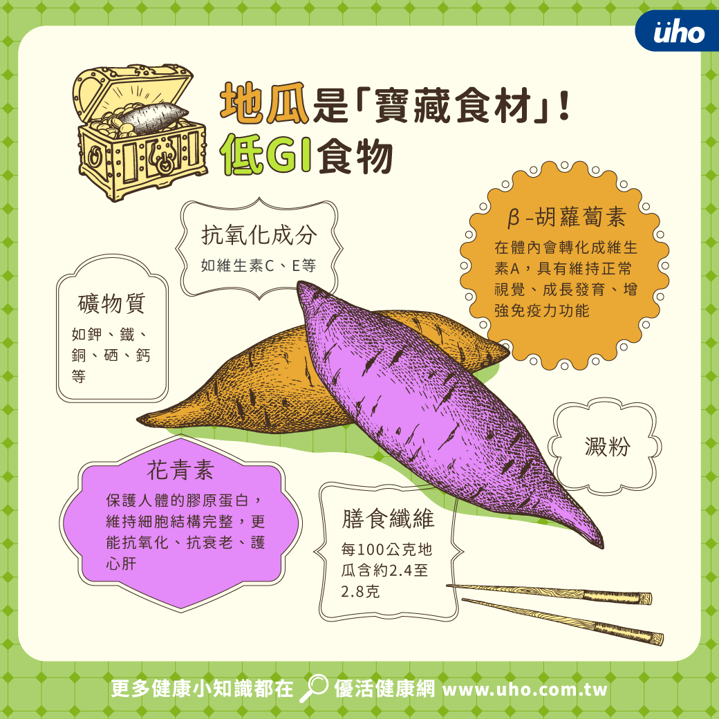 沈芝瑩表示,地瓜屬於低GI的食物之一,更富含多種營養素如: