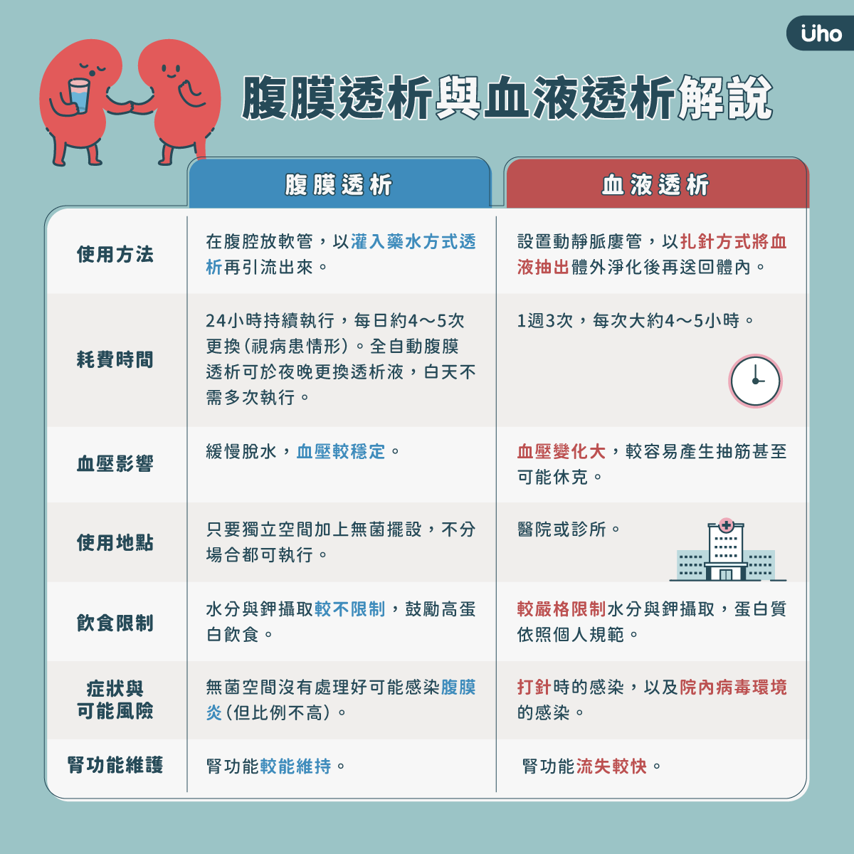 腹膜透析與血液透析詳解表
