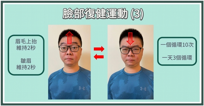 - 臉部運動:臉部、眼睛周圍、嘴部周邊肌群運動