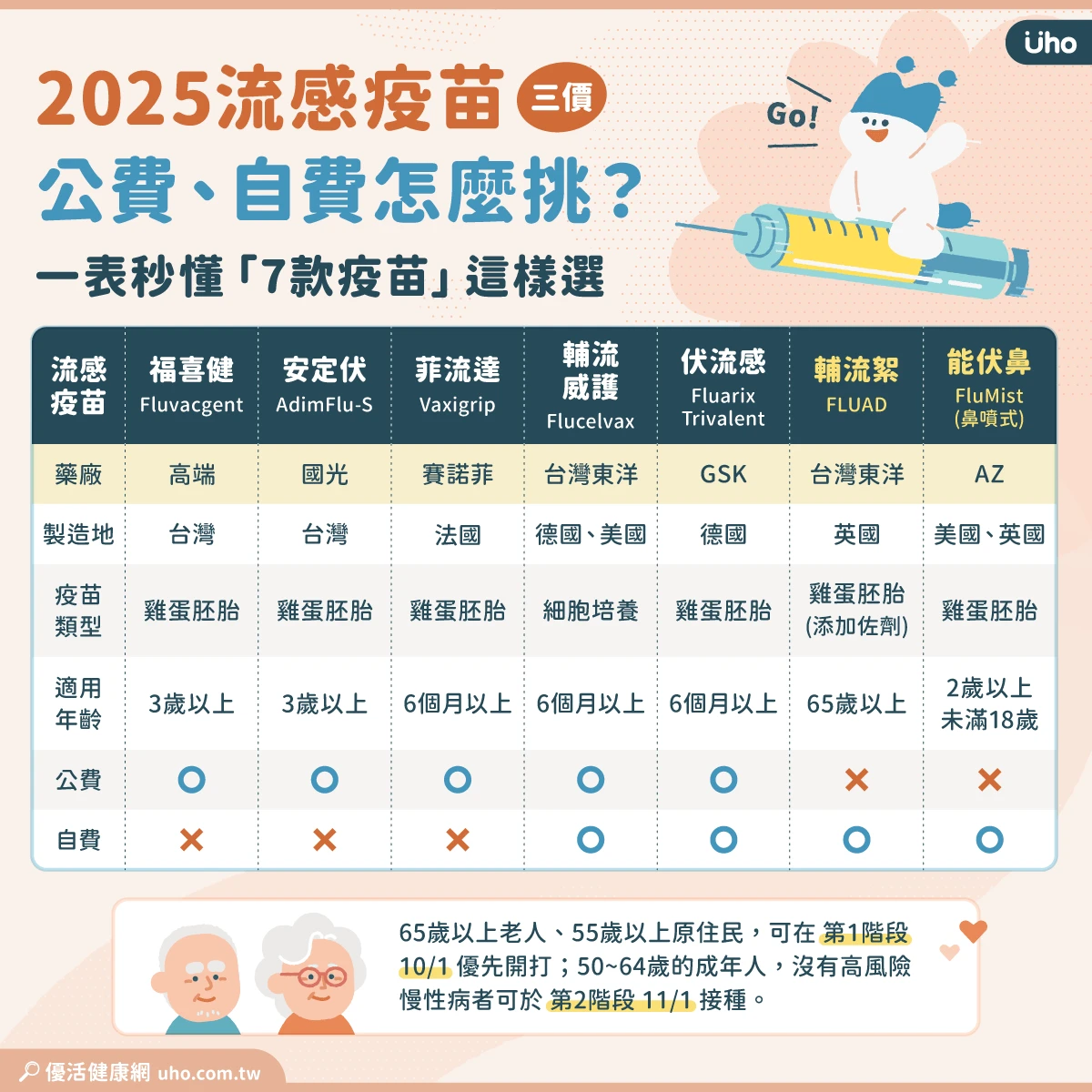 2025流感疫苗懶人包》流感疫苗怎麼挑?一表秒懂「7款疫苗」廠牌這樣選