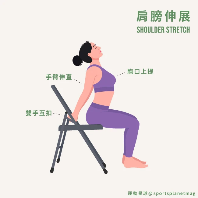 功效:伸展背部、肩膀;舒緩頸部壓力