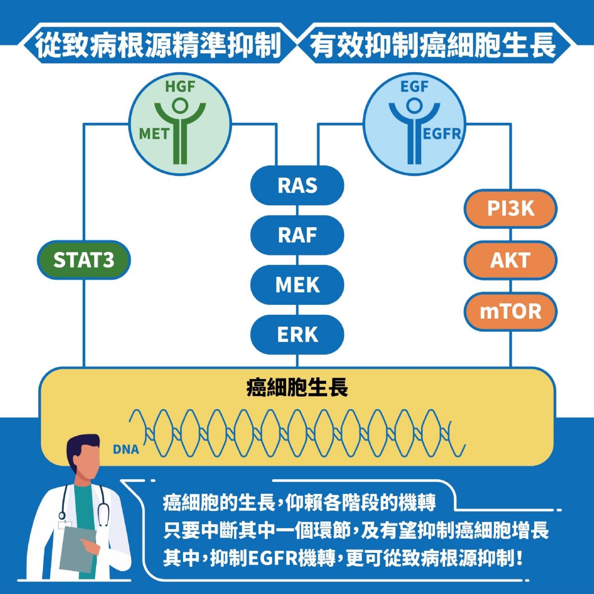 歐偉仁主任補充,針對大腸直腸癌的標靶治療,是否發生RAS突變是擬定療程的關鍵。發生突變者,目前會給予抗血管新生藥物(anti-VEGF);如果是RAS野生型(基因未突變)病患,則會使用人類表皮生長因子受體(EGFR)單株抗體標靶藥物合併化學治療。後者有望將無疾病惡化存活期拉長至10至13個月,平均存活期超過30個月,如果能開刀存活期則更長、甚至有望爭取治癒。