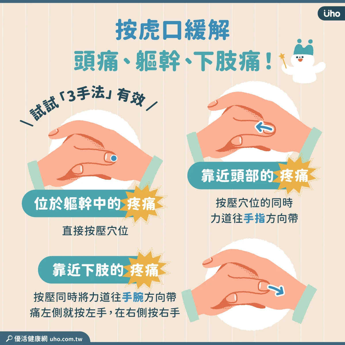 按虎口好處竟那麼多?中醫教你「3手法」有效緩解頭痛、軀幹、下肢痛