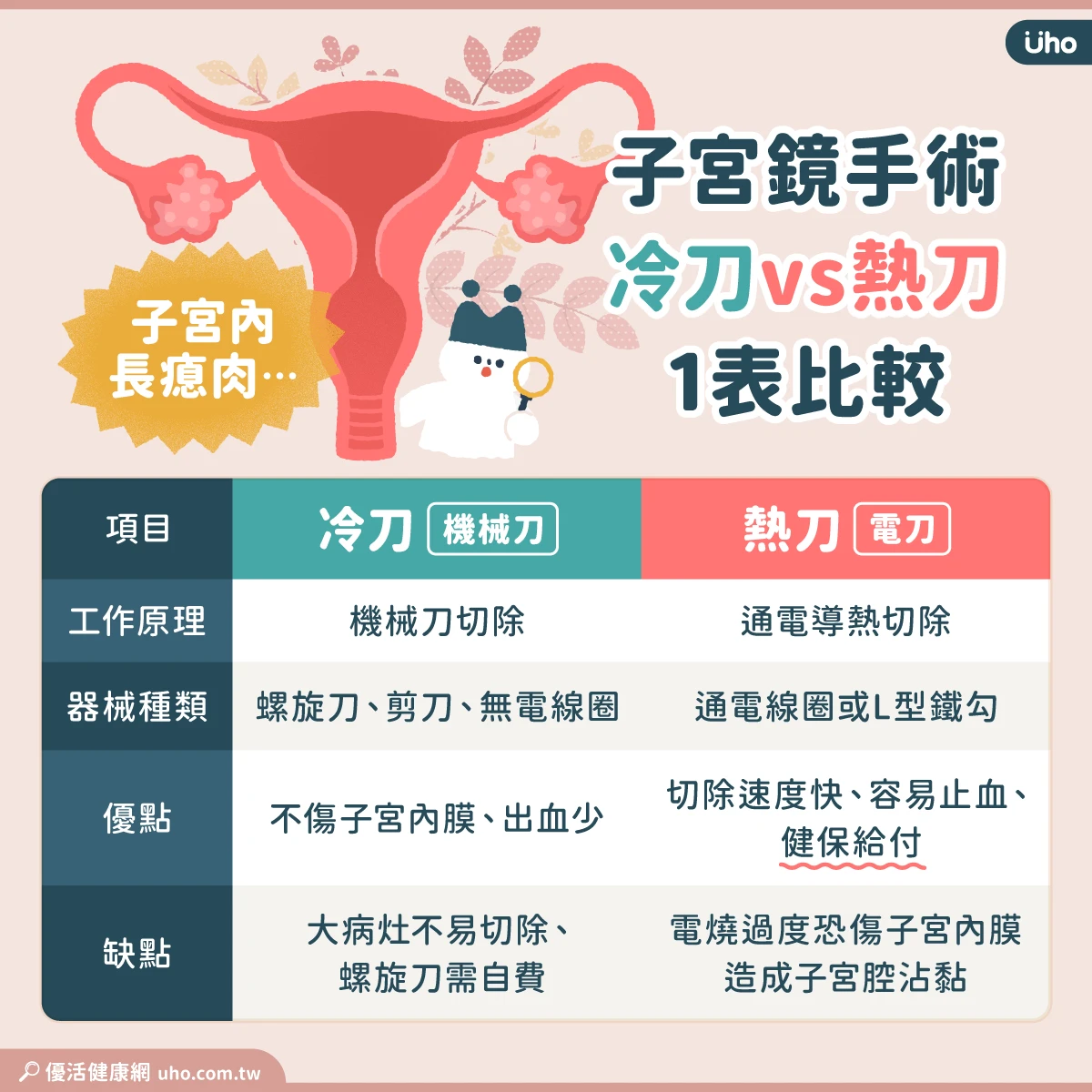 子宮內長瘜肉⋯需要手術切除嗎?子宮鏡手術「冷刀vs熱刀」優缺比較