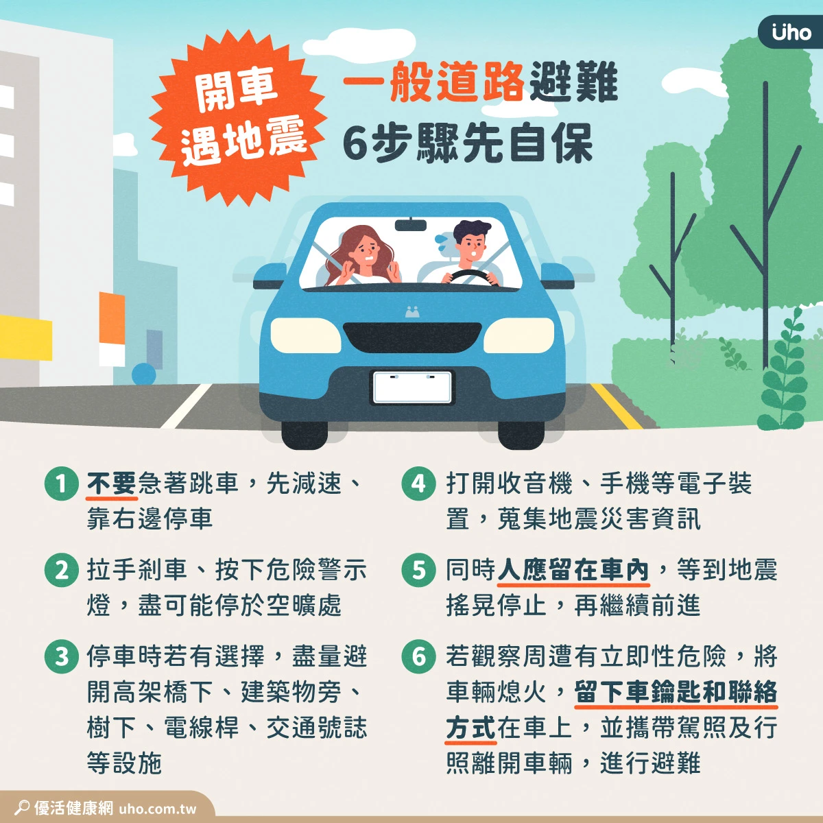 開車遇地震,一般道路避難6步驟