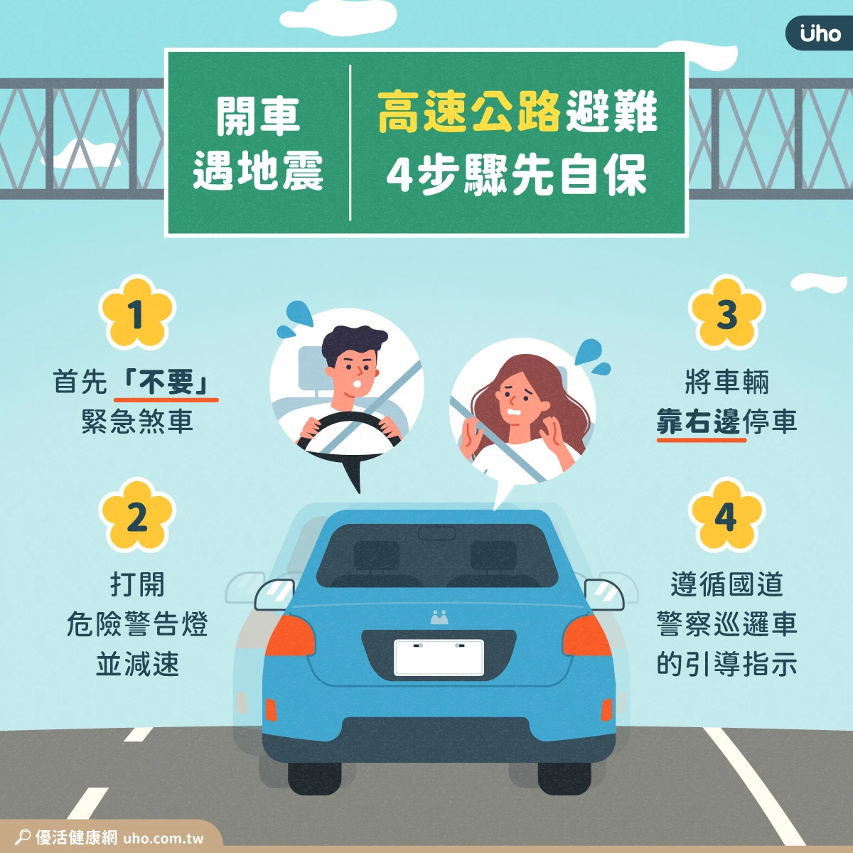 高速公路上,地震避難3步驟