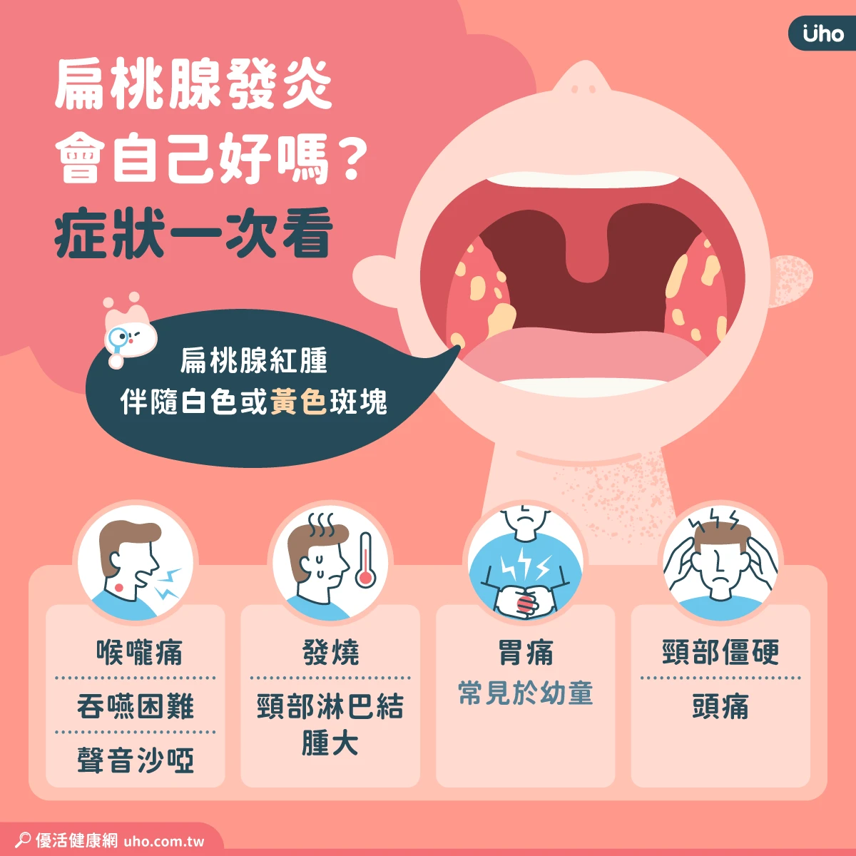 扁桃腺發炎會自己好嗎?一次看「原因、症狀、緩解法」1點和喉嚨痛不同