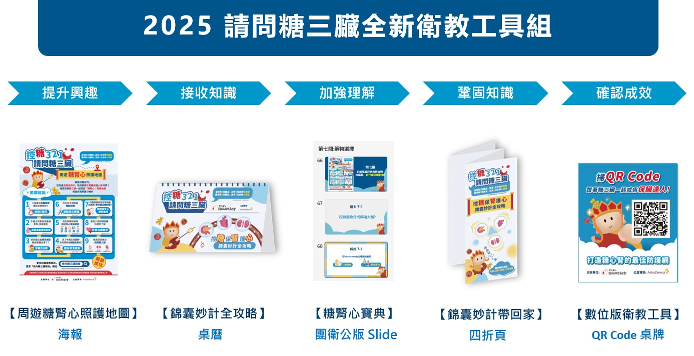 【控糖321請問糖三臟2.0】衛教工具組已開放全國醫療院所申請使用,基金會期望透過數位化、彈性的衛教模式,幫助更多糖友掌握控糖、保腎、護心的關鍵知識、提升生活品質,攜手成為保臟達人,共同對抗糖尿病及其併發症的威脅。