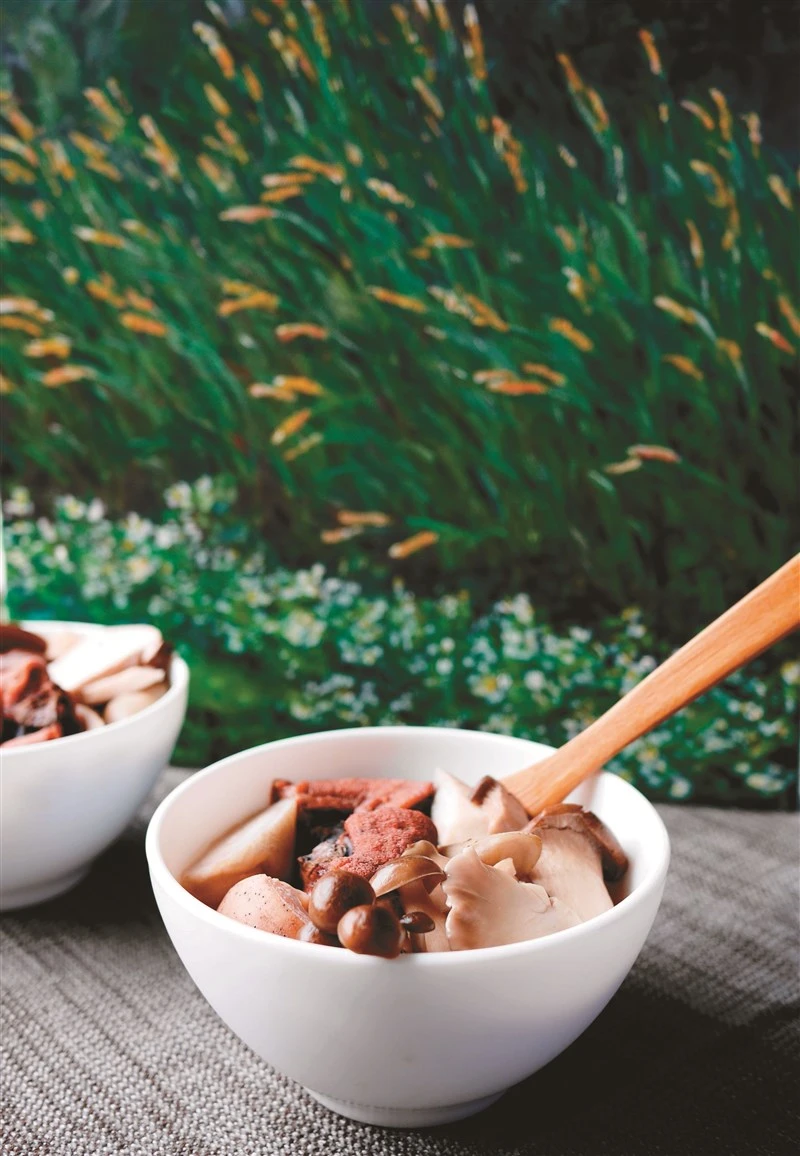 以柿餅做成湯品相當甘美,別忘了也要連著溫性的柿蒂一起燉煮,煮出來的柿餅湯是又營養又養生,在霜降時節應景補個秋。
