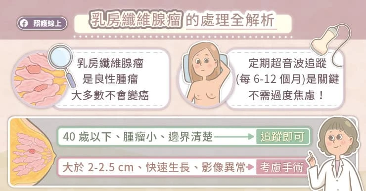 (本文獲照護線上授權轉載,原文為:醫師說是纖維腺瘤,真的不用開刀嗎?一定不會變成乳癌嗎?乳房纖維腺瘤的處理全解析)