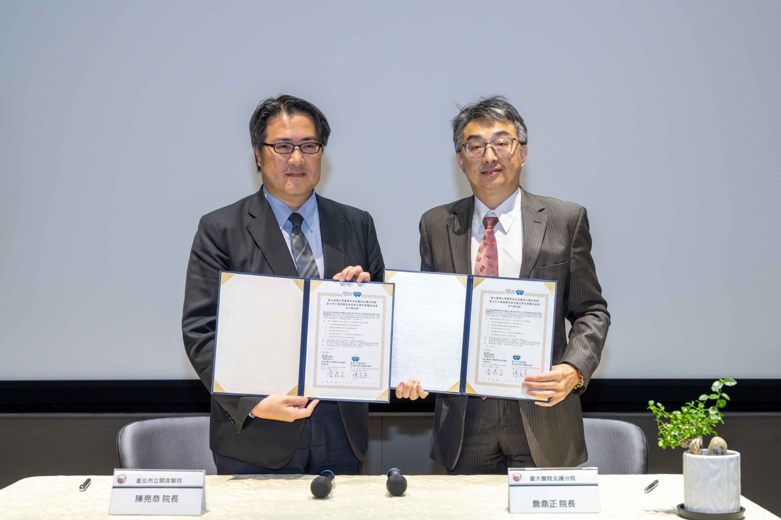 圖/臺大醫院北護分院與臺北市立關渡醫院簽署ESG合作備忘錄 攜手推動醫療永續與淨零轉型 共創健康環保未來記者會-締結姐妹醫院合作簽約儀式