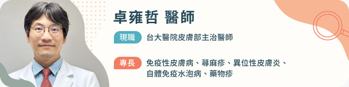 黃柏瑋醫師建議病友在病情惡化時可拍下照片,並簡單記錄可能的誘發因素,例如天氣悶熱、大量流汗、飲食改變或感染等。這些紀錄能協助醫師追蹤病情嚴重度、給予平常保養建議、並更快判斷病情是否符合再上車的標準,並及時調整治療策略。卓雍哲醫師補充,許多醫院在申請健保給付時,護理人員也會協助拍攝照片,患者不需擔心自己是否拍得不夠到位。