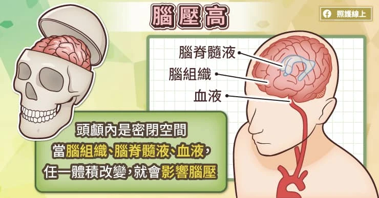 頭顱內是個密閉的空間,裡面包含了腦組織、腦脊髓液、血液,這3種成分的體積基本上是近乎固定的,維持著顱內壓力平衡,當任一的壓力改變都會影響腦壓。