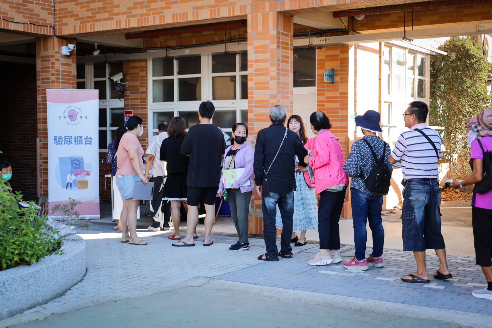 圖/篩檢活動分成多道關卡,參與篩檢的民眾依序排隊等候,逐一完成檢查項目。