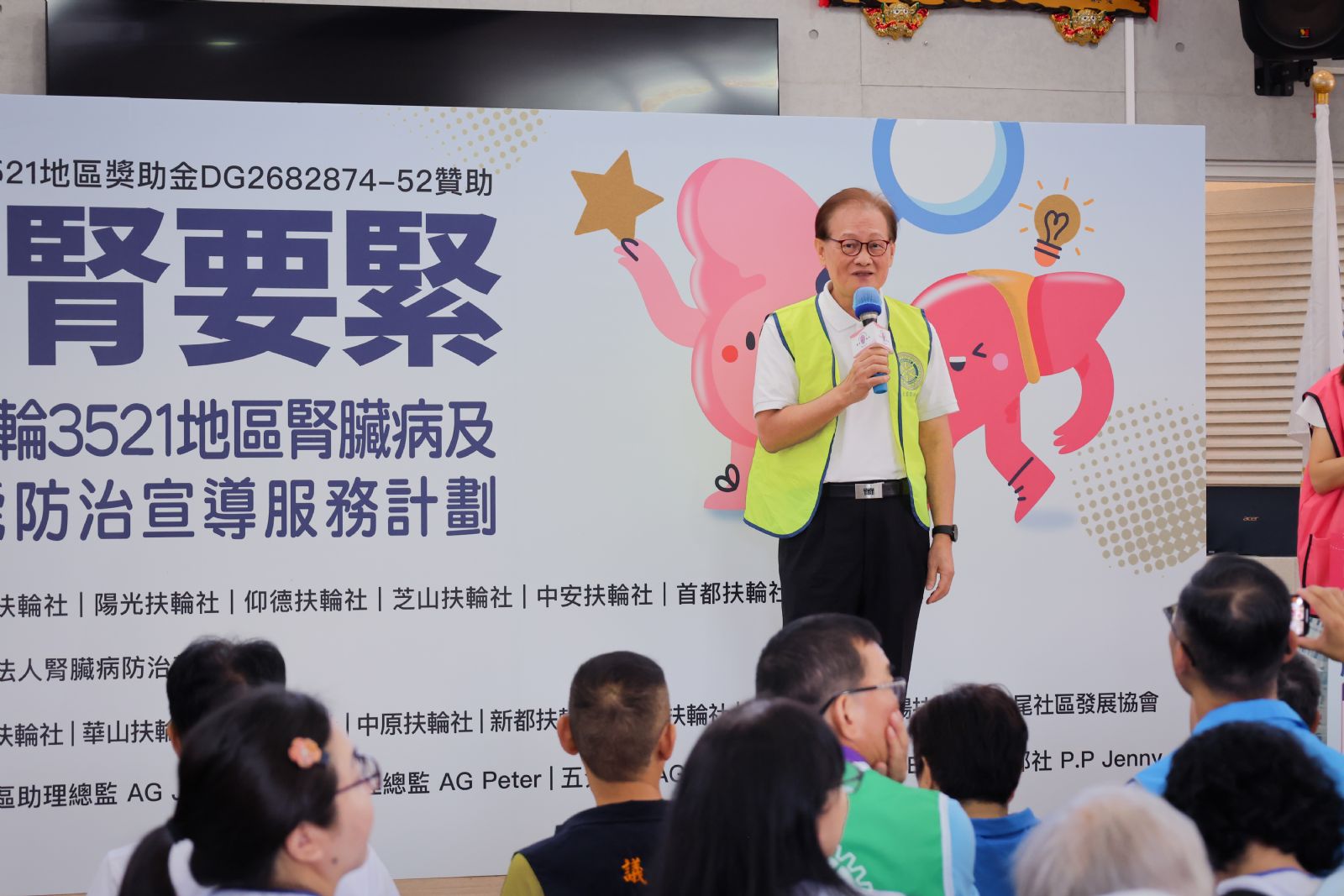 圖/國際扶輪3521地區腎病防治推廣委員主委謝再盛上台致詞,呼籲民眾注意自身健康變化。