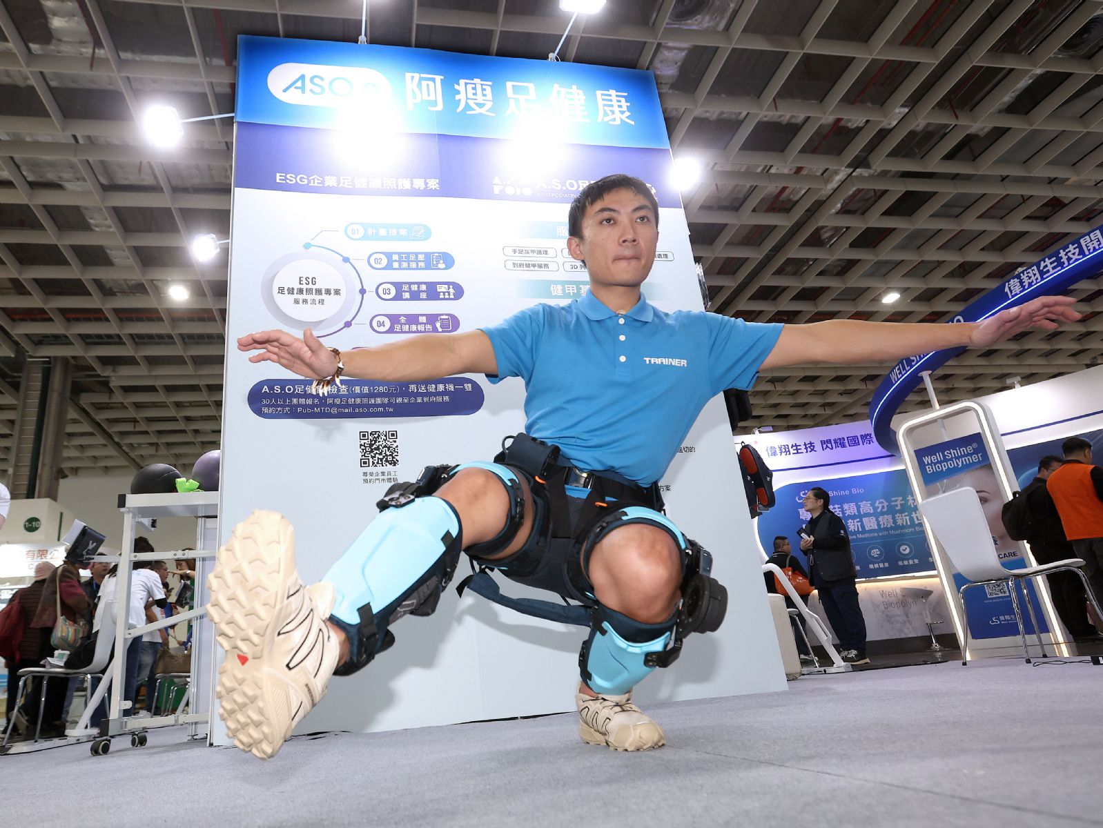 現場展示了構成此生態系的「黃金三角」,以阿瘦的足測數據為大腦決策核心,緯創醫學科技的iKneego外骨骼提供外掛肌肉,習慣健康國際的教練建構執行,三者串聯實現從預防到賦能的閉環:
