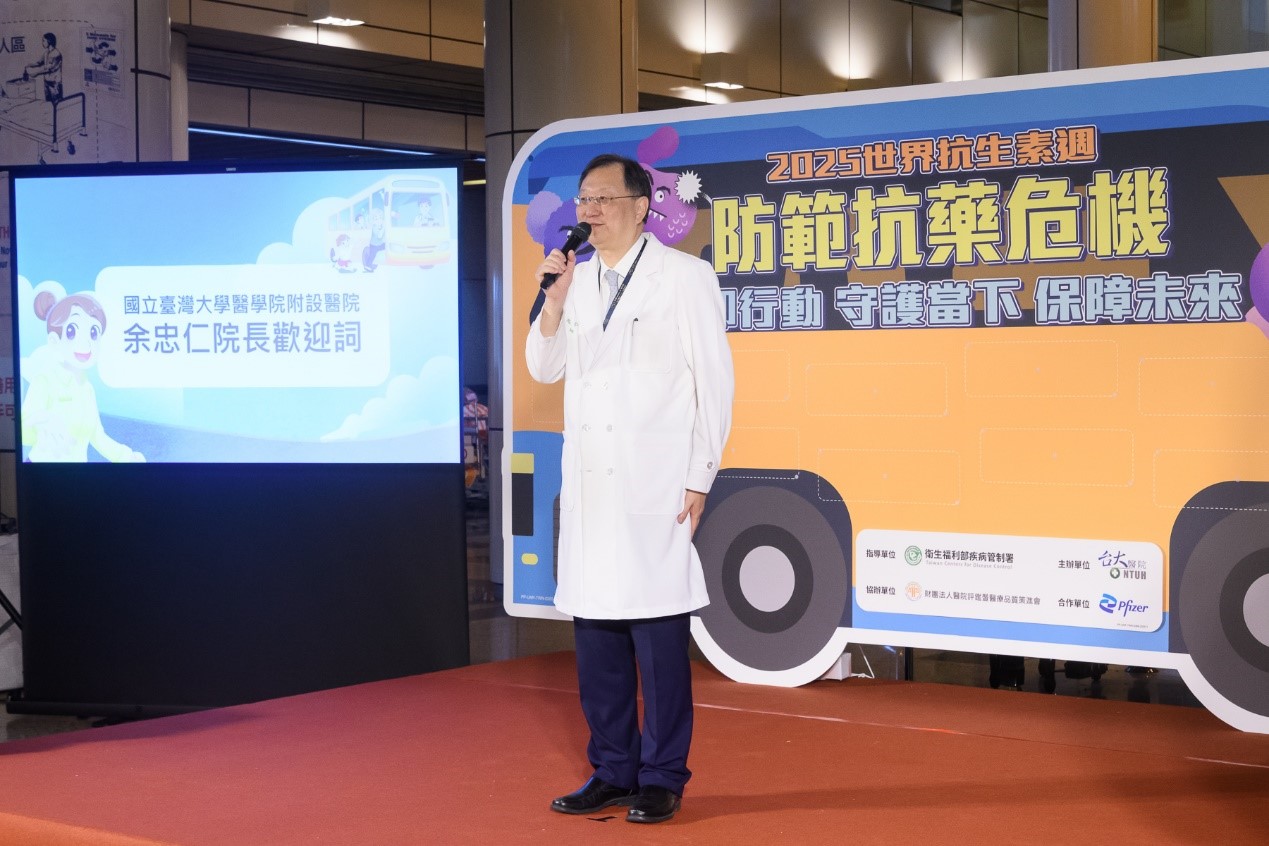 「防範抗藥性也須全民攜手來響應!」臺大醫院余忠仁院長表示,臺大作為教學醫院,除了在臨床推動嚴謹的抗生素管理制度,更希望透過這類貼近民眾的活動,讓預防醫學與正確用藥的理念真正走入日常,使全民都能在生活中參與抗藥性防治。