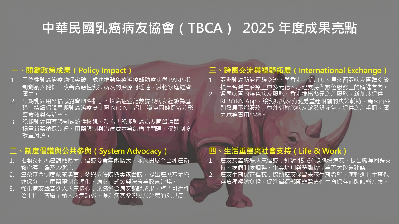 圖/中華民國乳癌病友協會2025年度成果亮點(照片來源:中華民國乳癌病友協會)