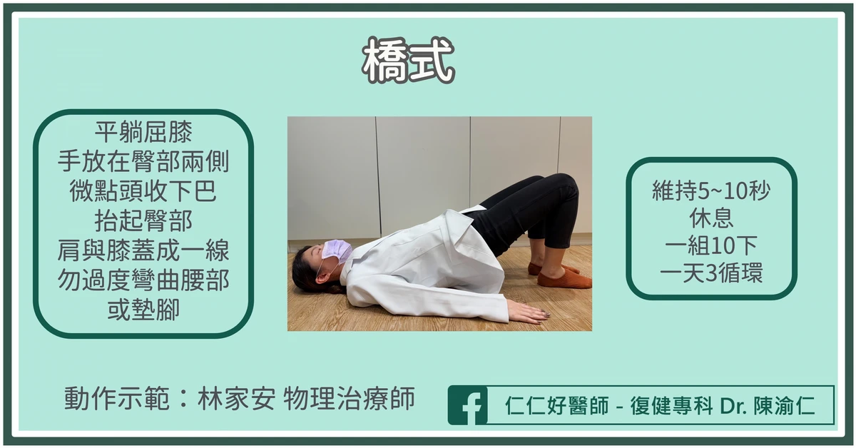 若有關節肌肉韌帶疼痛問題,先確定診斷並以物理治療、藥物、或增生注射治療等方式介入緩解疼痛,避免進入疼痛的惡性循環。