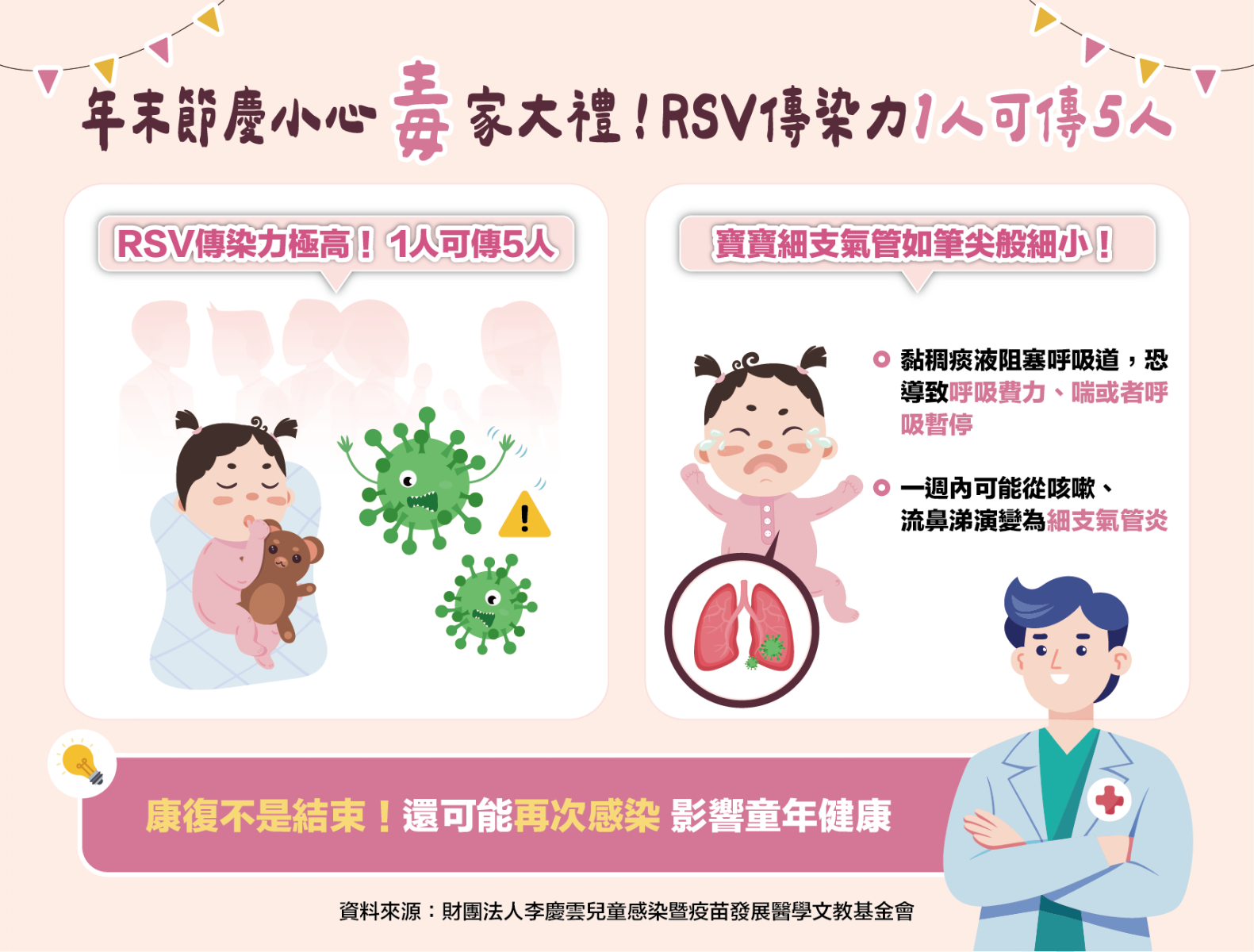 圖/衛教懶人圖-年末節慶小心「毒」家大禮!RSV傳染力1人可傳5人