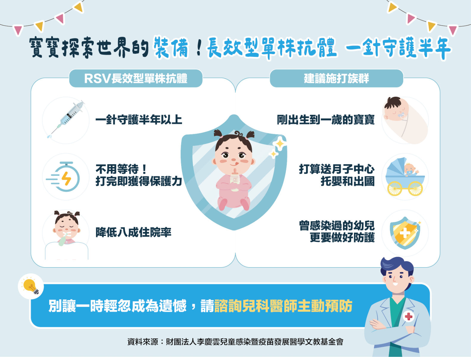 圖/衛教懶人圖-寶寶探索世界的裝備!長效型單株抗體一針守護半年