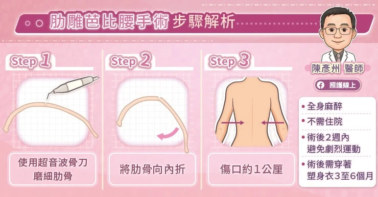 (本文獲照護線上授權轉載,原文為:腰部曲線改善對策解析,肋雕芭比腰手術步驟與特點,整形外科陳彥州醫師圖文解說)
