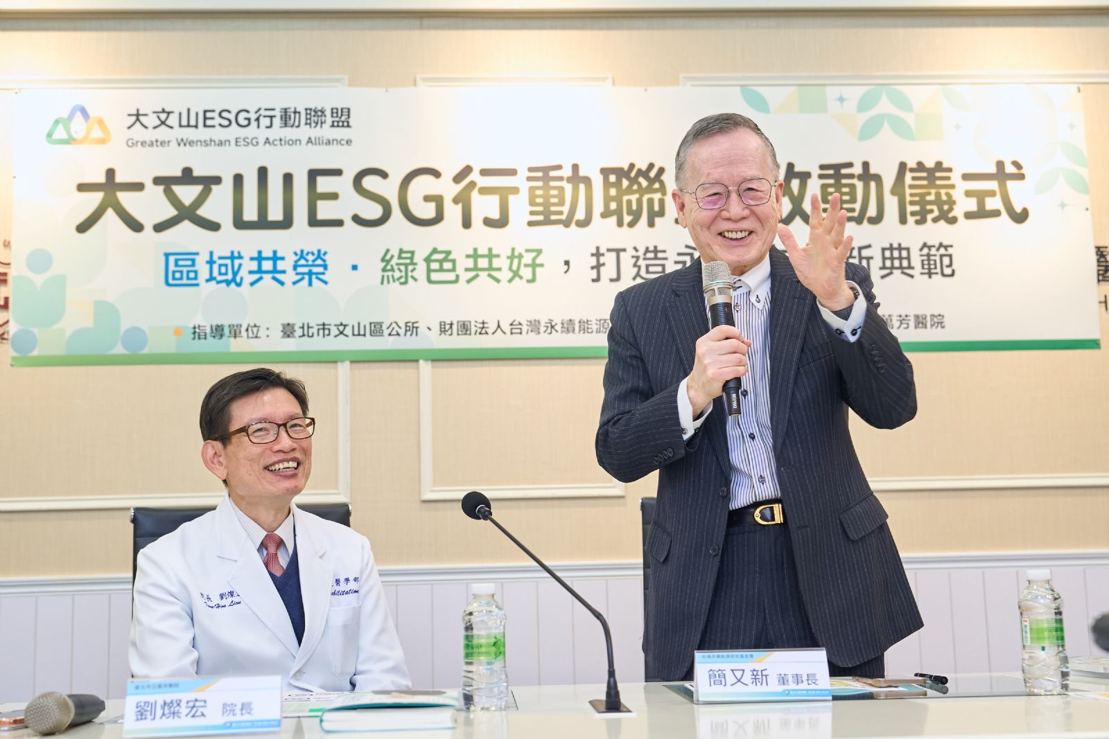 圖/台灣永續能源研究基金會簡又新董事長(右)對此高度肯定,認為這是一個由「核心機構(醫院)」帶動「區域生態」的優異典範,期待這股力量能從文山區擴散,成為全台各區域 ESG 發展的參考指標。