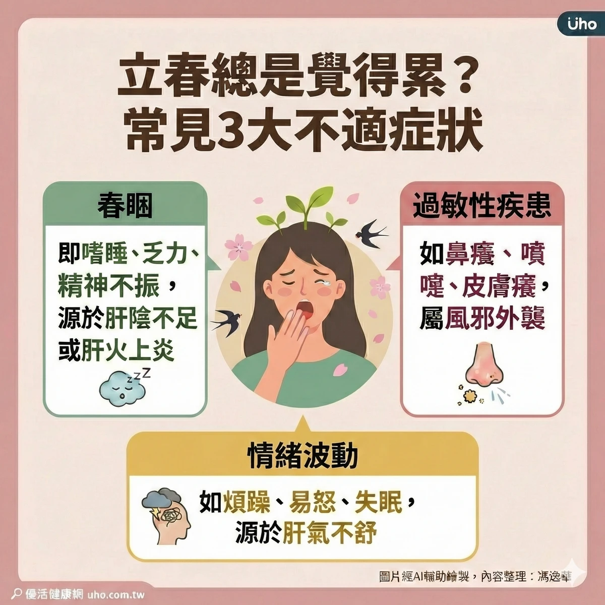 - 春睏:即嗜睡、乏力、精神不振,源於肝陰不足或肝火上炎。
