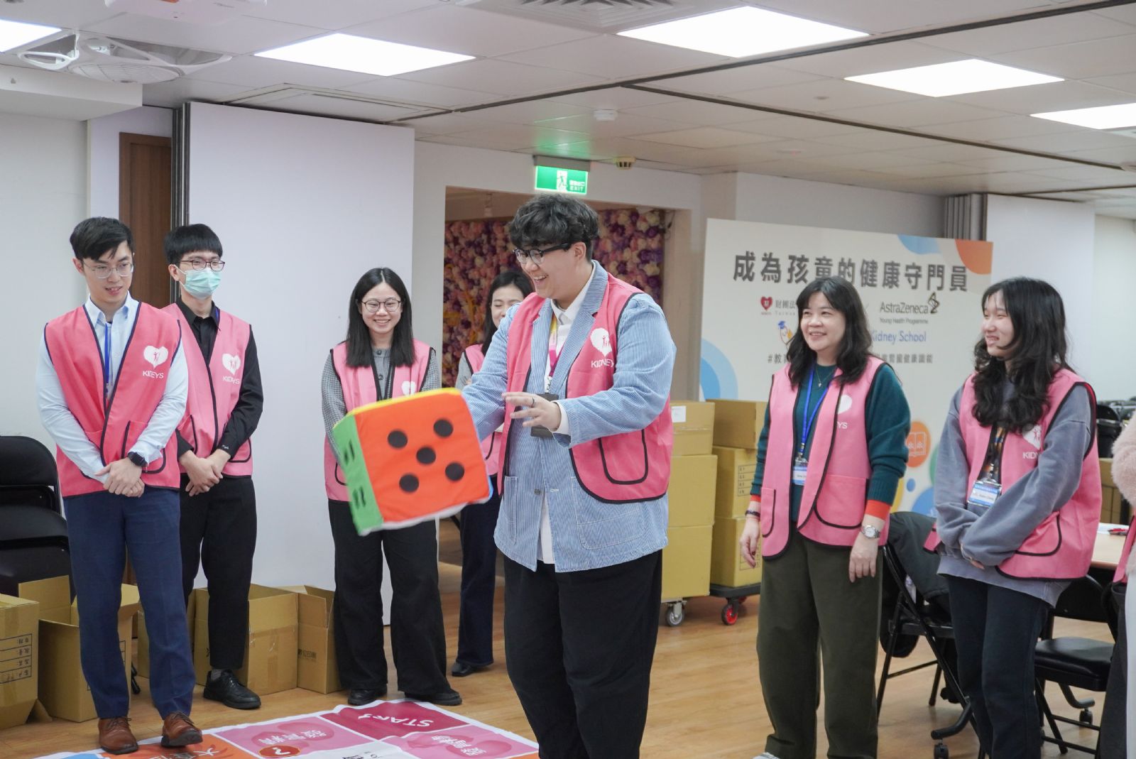 除了靜態的教材包裝,活動也安排了動態體驗,讓平時忙於工作的臺灣AZ夥伴親身感受腎基會寓教於樂的教學理念。了解線上課程、繪畫比賽及夏令營如何影響數千個家庭後,志工們接著挑戰了「身體守門員」舞蹈與「腎者為王大富翁」遊戲。