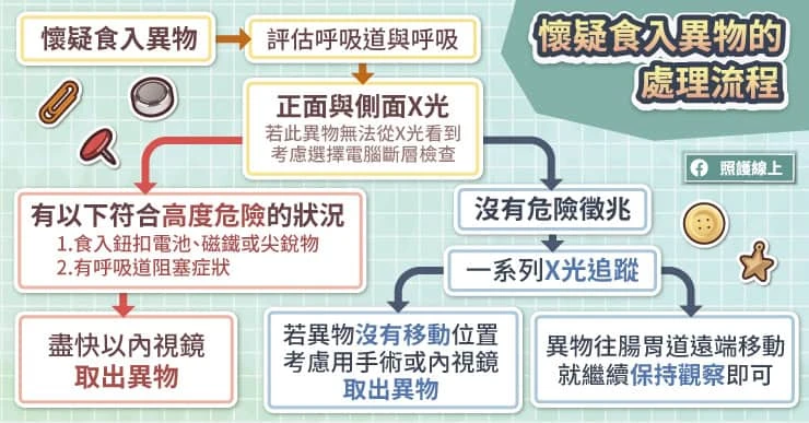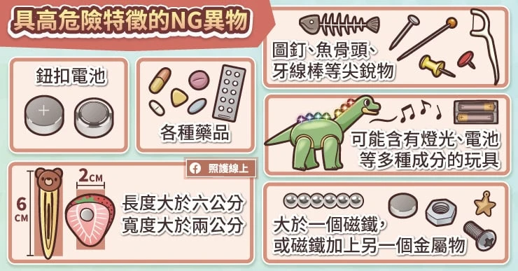 (本文獲照護線上授權轉載,原文為:吞下硬幣、電池、玩具該怎麼辦?哪些異物最NG?誤食應對指南(圖文懶人包))