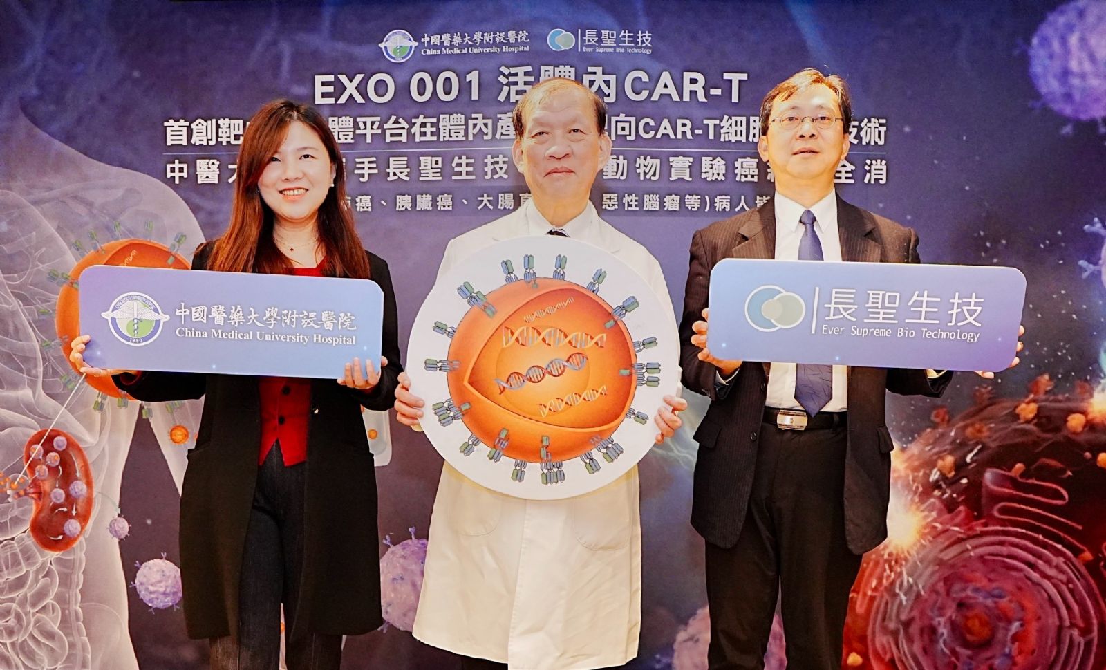 中醫大附醫攜手長聖生技 部分動物實驗癌細胞全消 首創靶向外泌體平台在體內產生多靶向CAR-T細胞治療技術