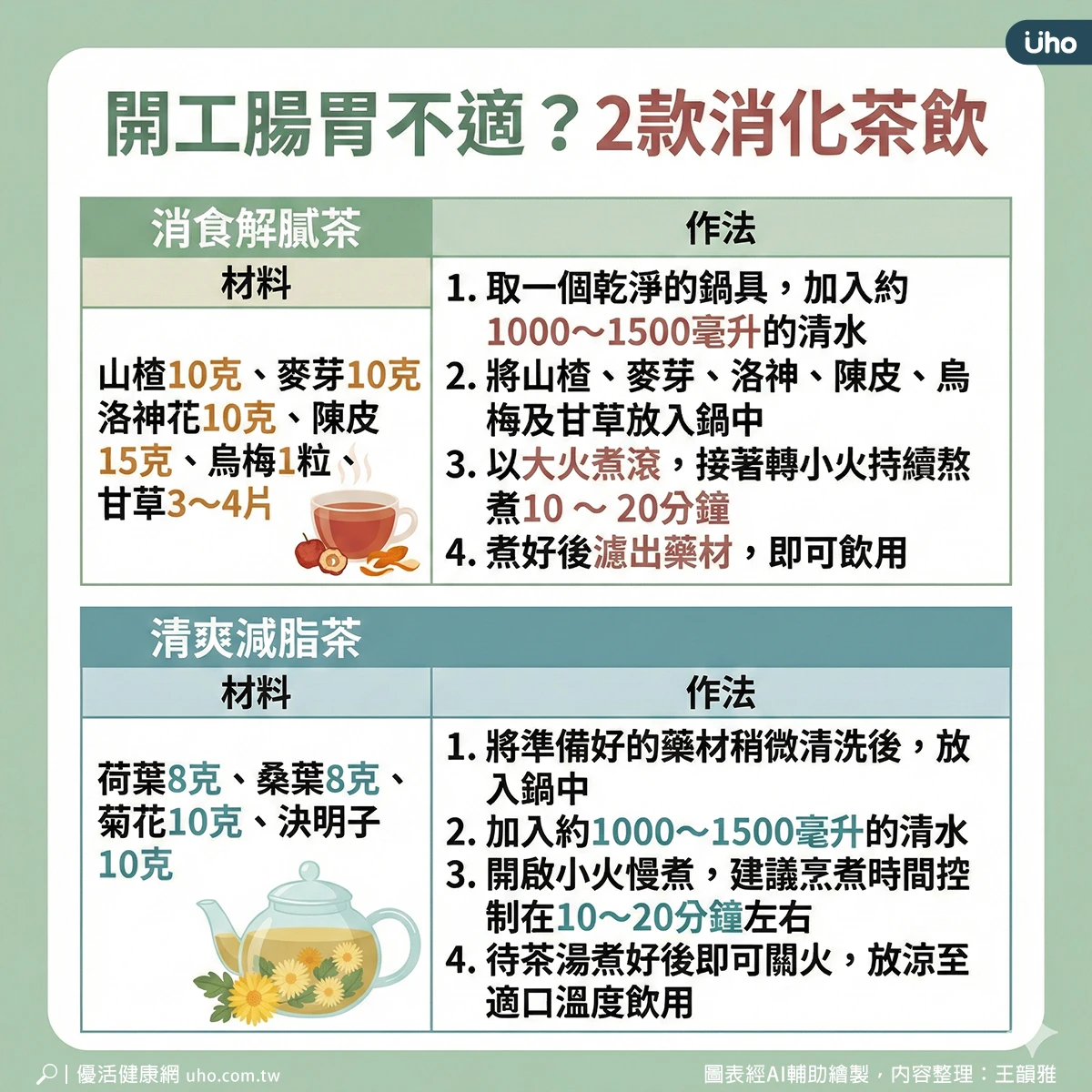 推薦2款消化茶飲