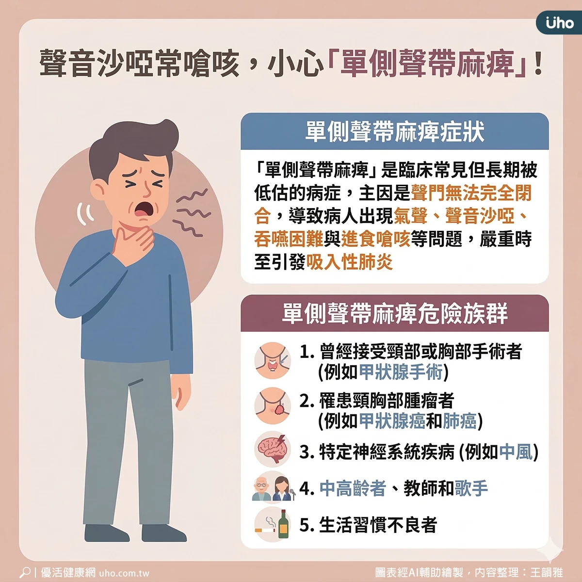 聲音沙啞、常嗆咳⋯小心「單側聲帶麻痺」!醫示警:嚴重恐吸入性肺炎