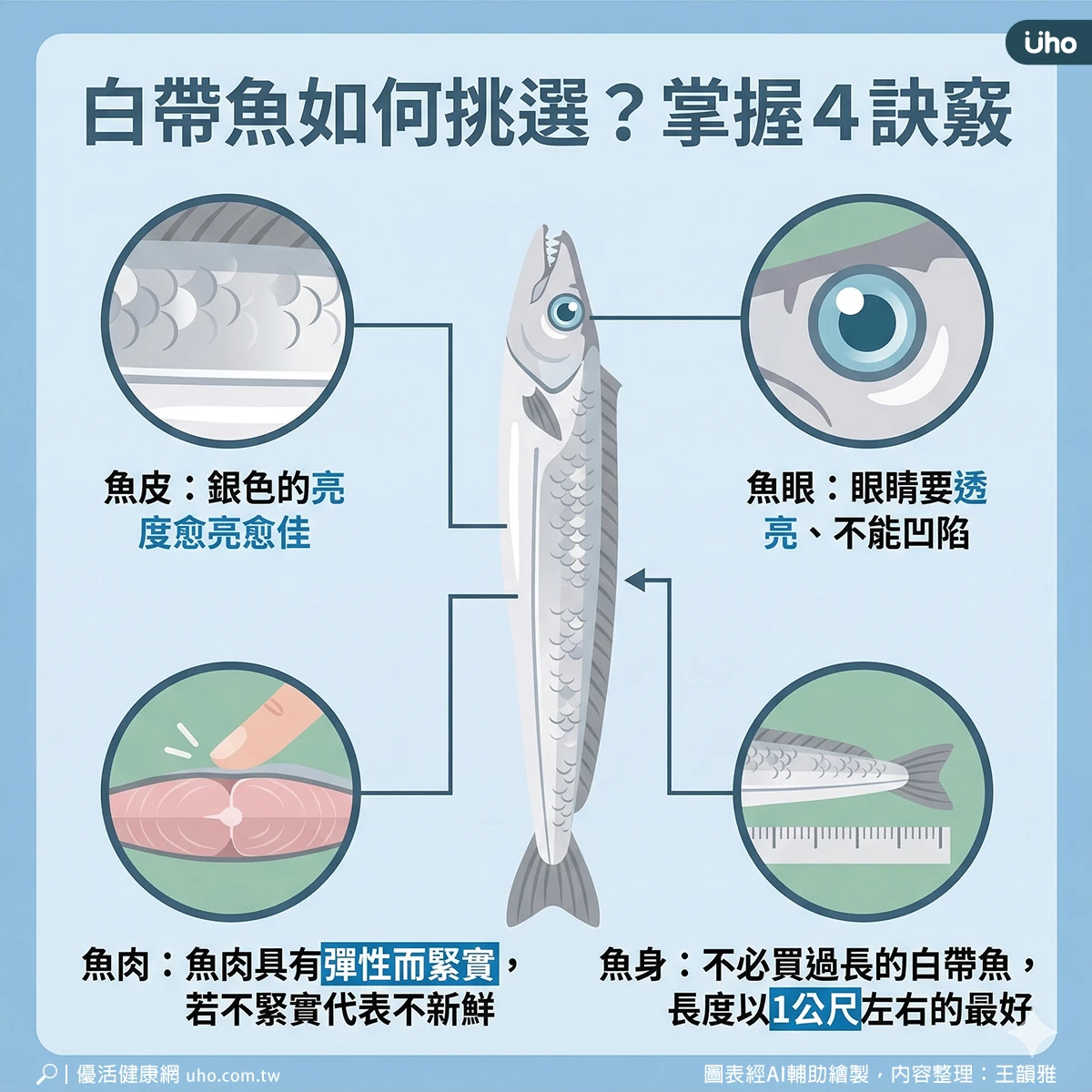 白帶魚如何挑選才新鮮?建議遵守一般挑選魚類法則即可,可以從魚皮、魚眼、魚肉、魚身等方向著手,例如魚眼是否新鮮不混濁、輕碰魚肉是否帶有彈性而緊實,另外也可觀察魚身的完整度。