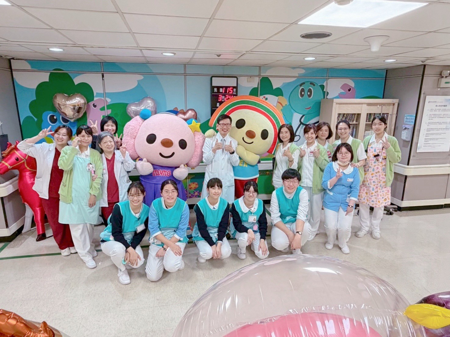 除了衛教活動,萬芳醫院劉燦宏院長也率領醫護團隊與OPEN走進兒童病房,探視住院中的小朋友。當可愛的OPEN現身,原本安靜的病房頓時充滿笑聲與驚喜,劉院長與梁雅婷副院長共同親自送上禮物與祝福,為病童與家屬帶來溫暖支持。