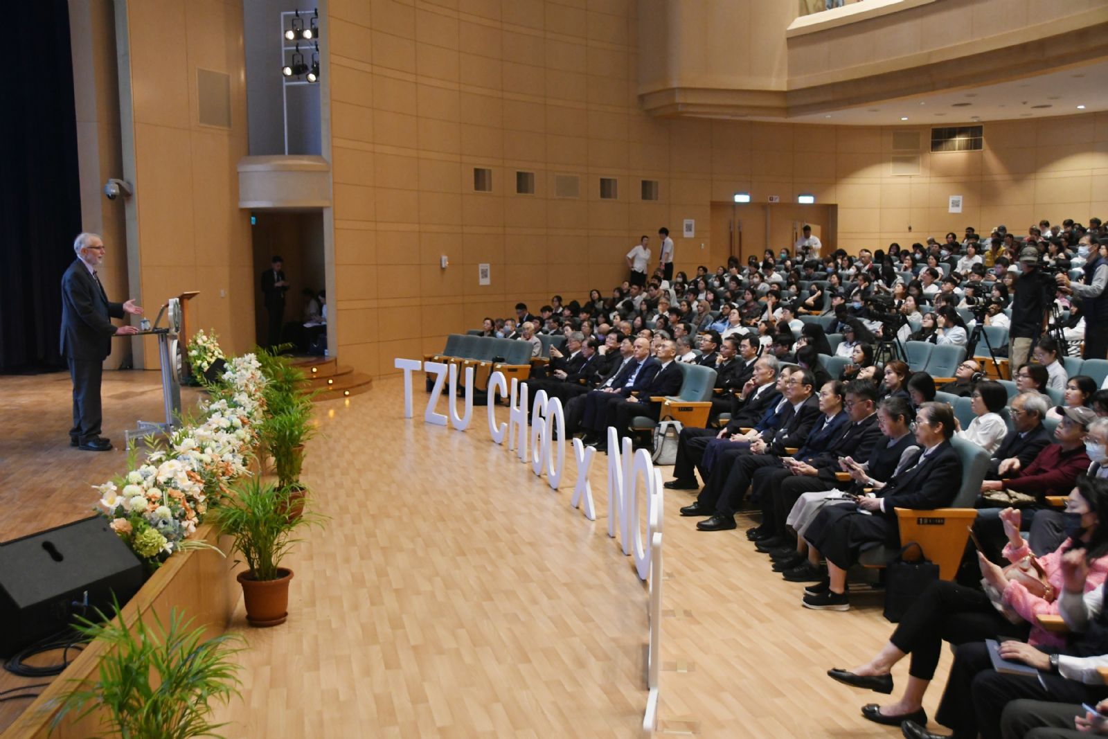 2020年諾貝爾生理或醫學獎得主查爾斯.賴斯(Charles M. Rice)教授,於30日受邀至慈濟大學發表「全球傳染病:成就與挑戰」專題演講。賴斯教授不僅分享C型肝炎病毒(HCV)研究的關鍵突破,更與現場逾800位慈大師生及高中生親切互動。賴斯教授鼓勵大家在未知傳染病的威脅下,應勇於投入科學研究,共同守護人類健康。