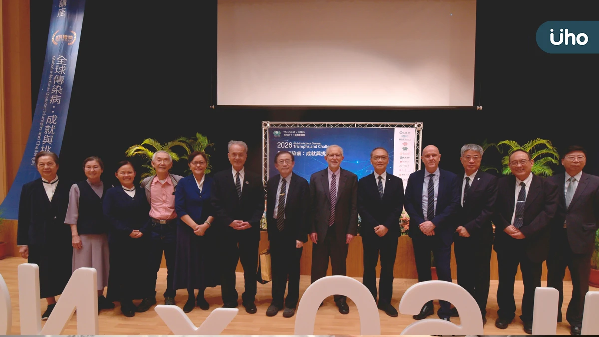 圖/2020年諾貝爾生理或醫學獎得主查爾斯.賴斯(Charles M. Rice)教授,於30日受邀至慈濟大學發表「全球傳染病:成就與挑戰」的專題演講。邀請慈濟慈善事業基金會執行長顏博文、台北慈濟醫院院長趙有誠、台灣肝病醫療策進會會長高嘉宏一同共襄盛舉。