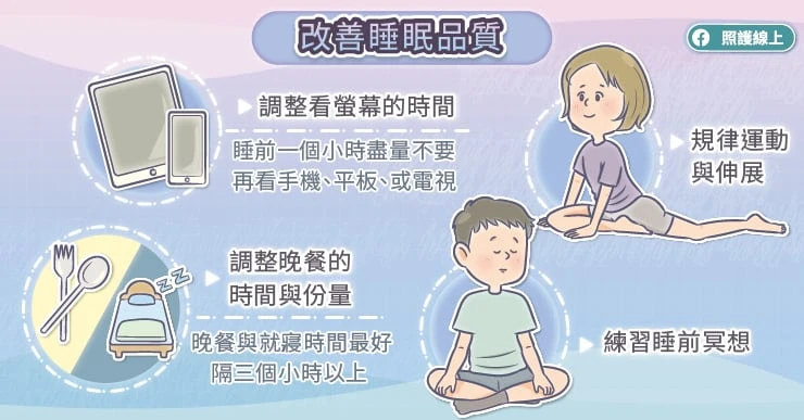 假如你覺得自己的狀況沒有到上述那麼嚴重,只是覺得最近睡眠品質似乎愈來愈差,想要改善一下睡眠品質,可以先試試看幾個做法: