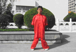 ![]() | 上肢動作:左手掌弧口張開、四指微張、大拇指指向左腳膝蓋。右手掌弧口張開向上、四指微張,掌指齊眉間。雙手手臂微彎。沉肩墜肘、含胸拔背。 |